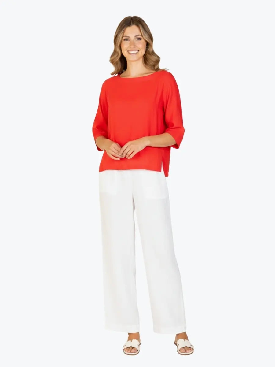 The Serena top is a lovely top to team with pants for a casual summer vibe. The clever panelling forms two side splits and the sleeve is the much favoured elbow length.