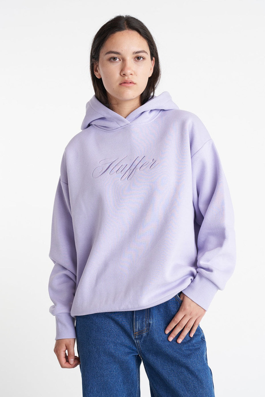 50% Cotton 50% Polyester / 320gsm / Mid-weight brushback fleece / Custom Huffer colour / Boxy fit / Huffer branded hardware / Huffer branded