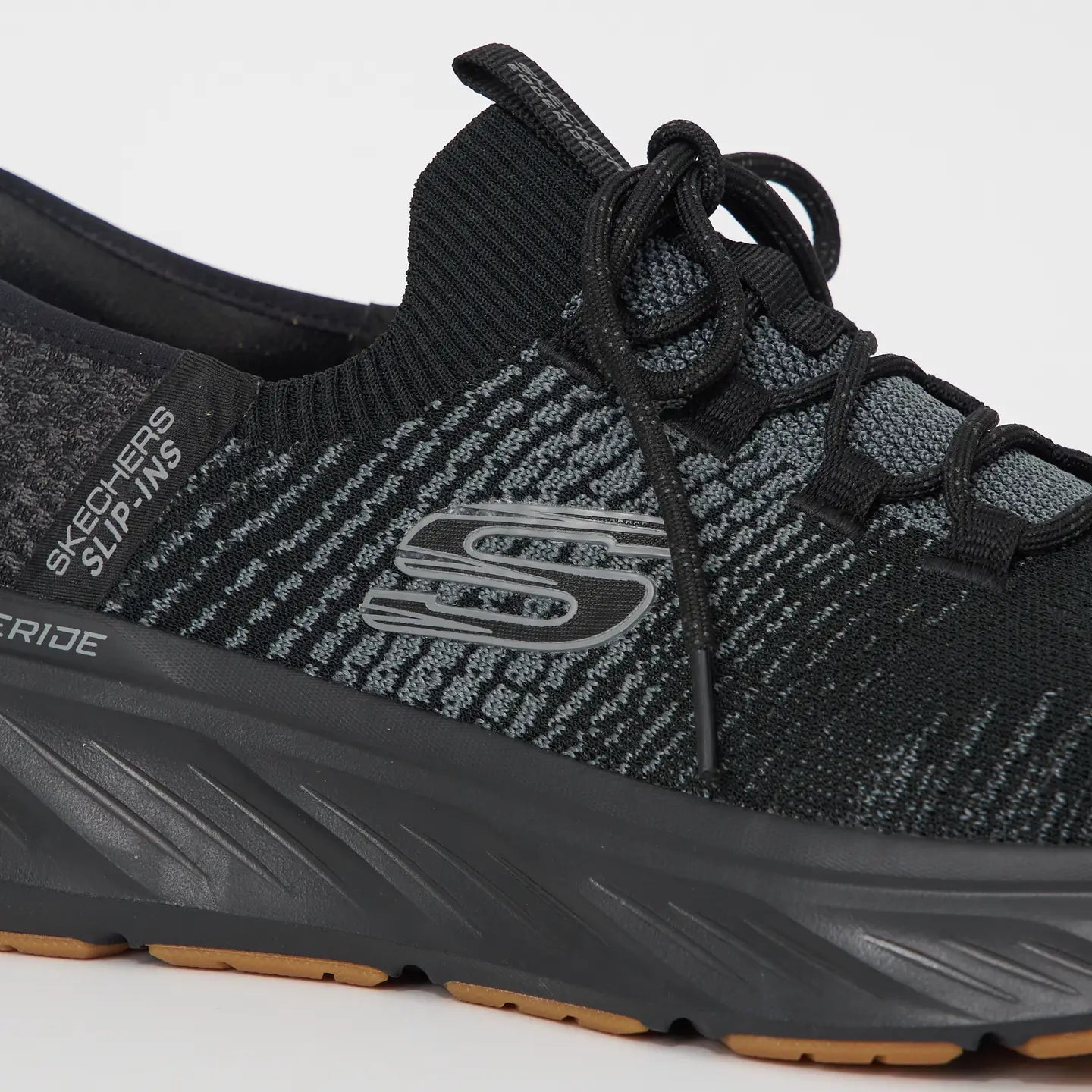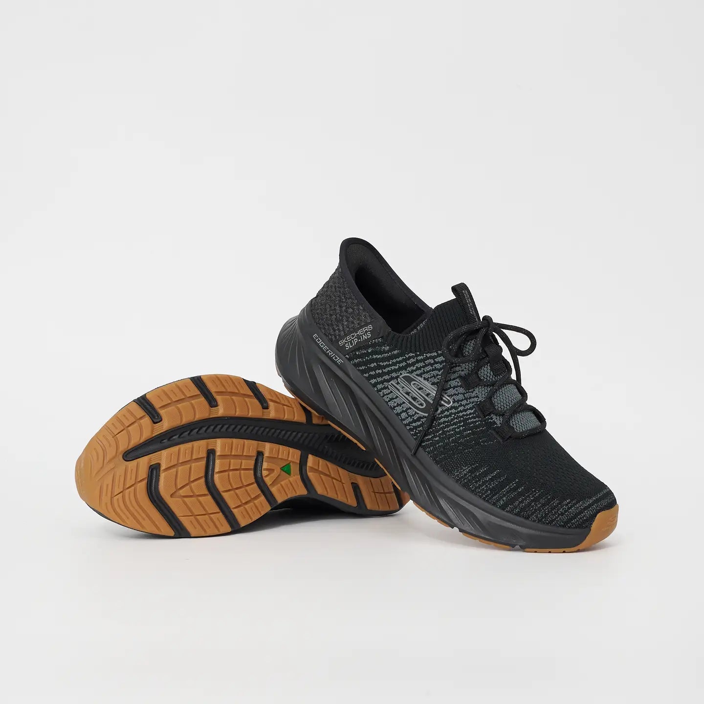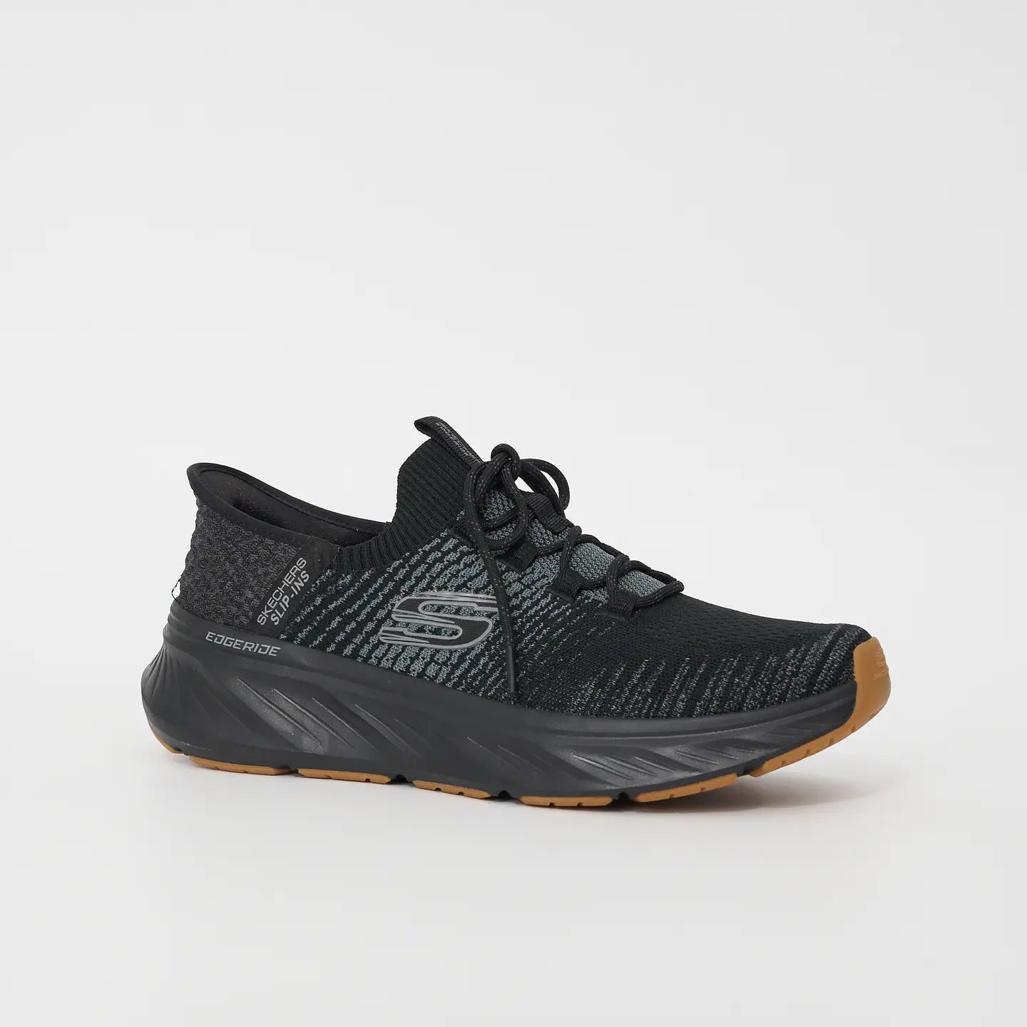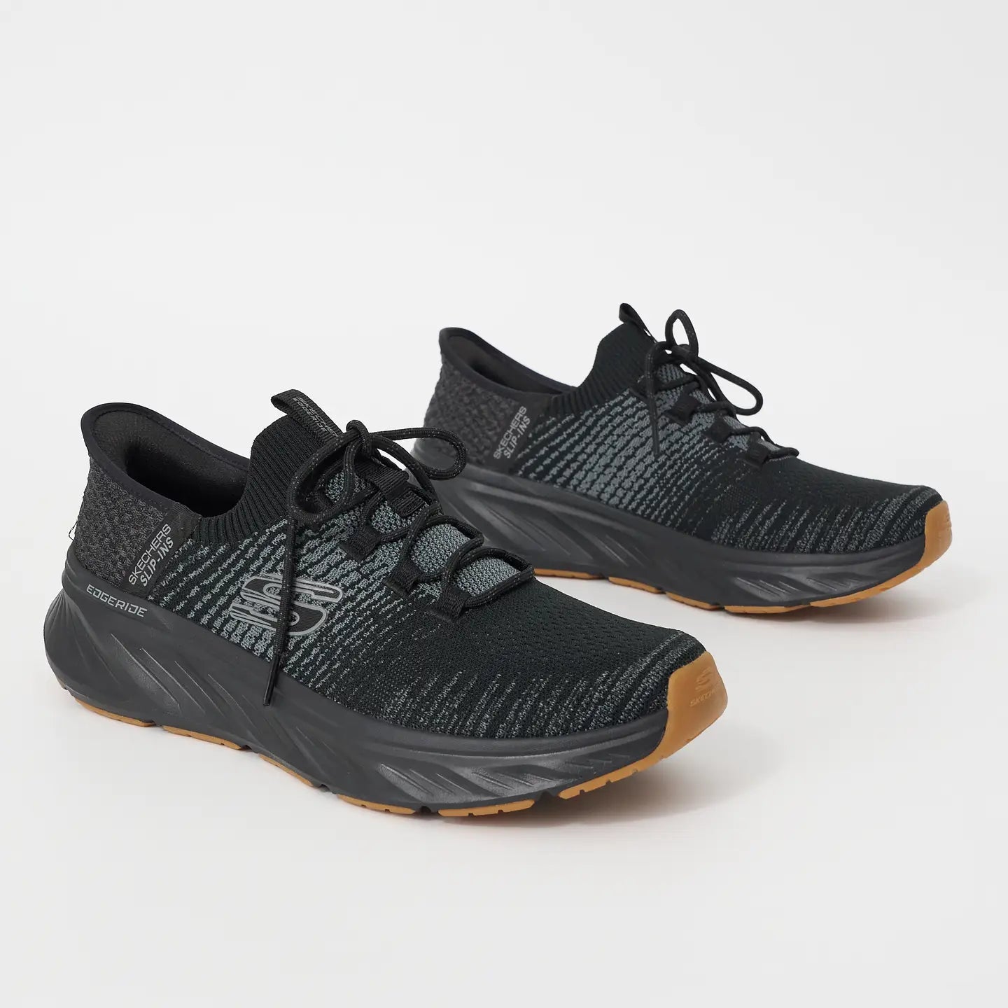 Show off your comfort wearing Skechers Hands Free Slip-ins® Relaxed Fit®: Edgeride - Raygo. This sporty vegan design features a heathered engineered knit upper with an Exclusive Heel Pillow™, adjustable laces, and a cushioned Skechers Air-Cooled Memory Foam® insole.