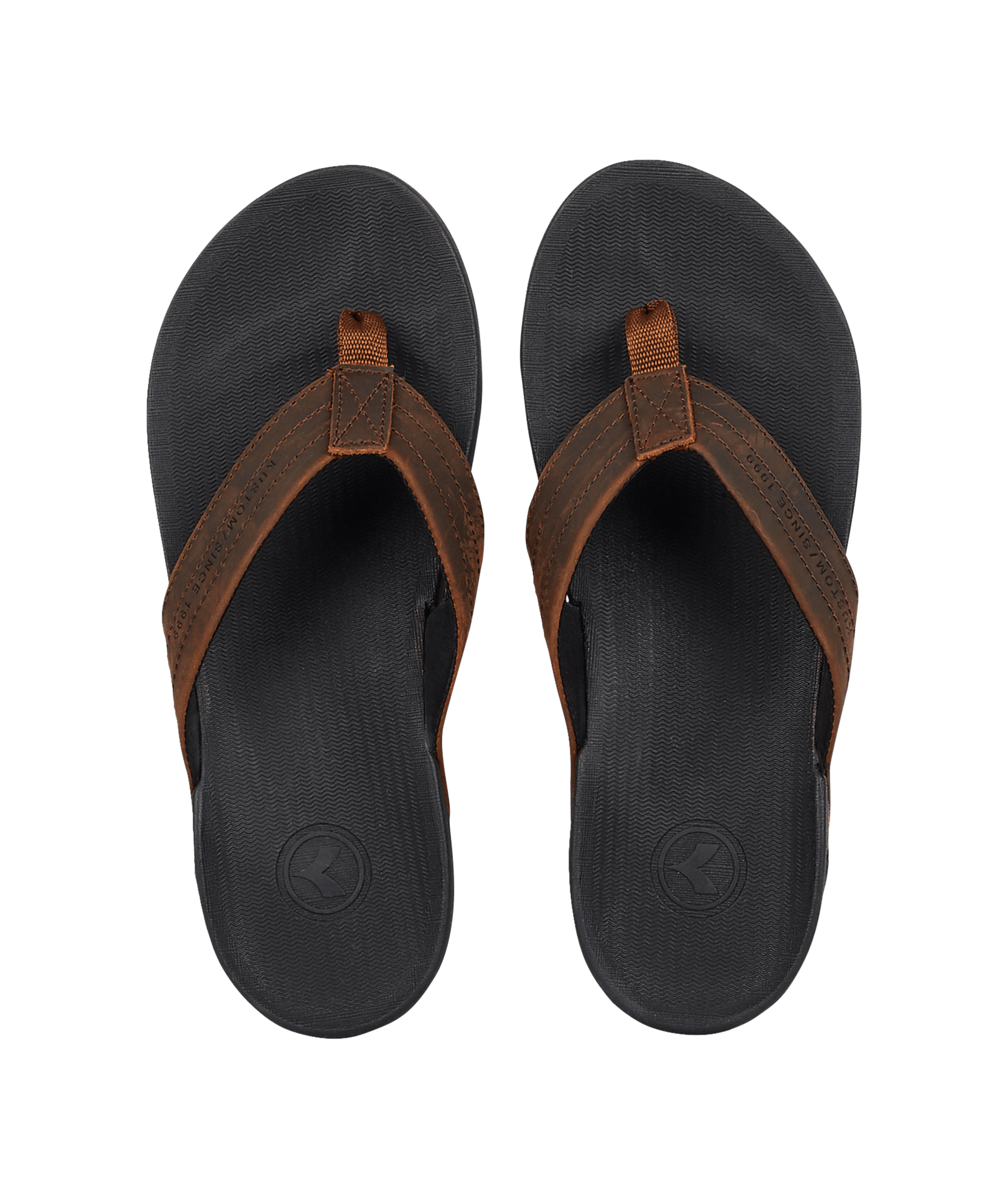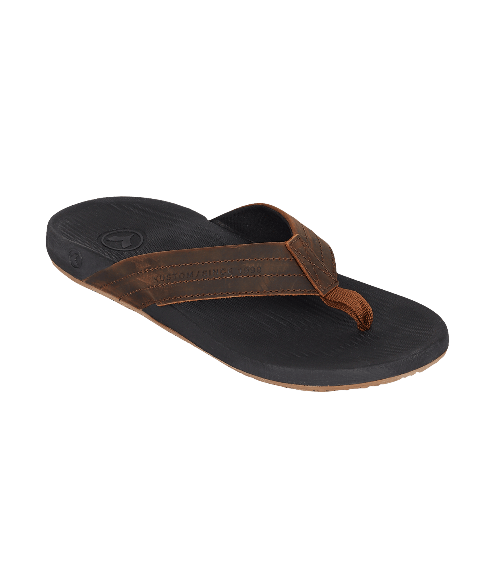 All day comfort and premium detailing with the longevity of leather. The Kustom Mens Cruiser Thong in Dark Brown features a premium full grain leather footbed and strap, soft textile liner for instant comfort, and anatomically correct arch support and heel cup.