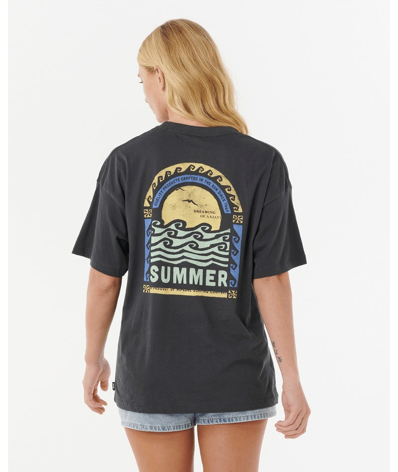 Stonewashed and relaxed, the Summer Heritage Tee combines front and back prints with a heritage fit. The woven flag label and inner neck print complete this timeless summer essential.