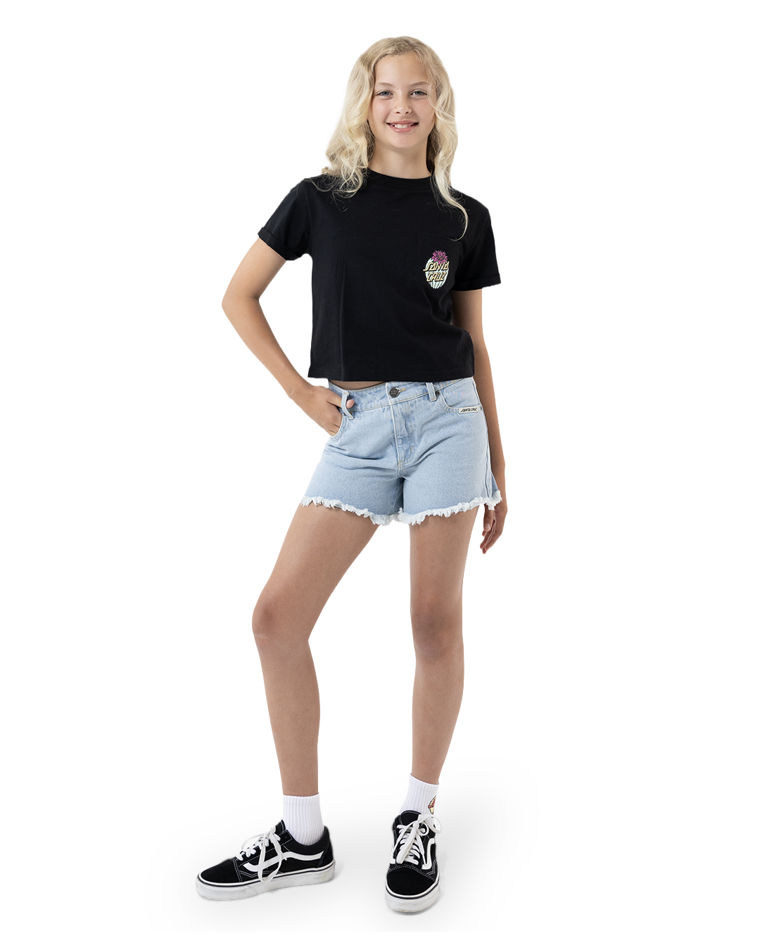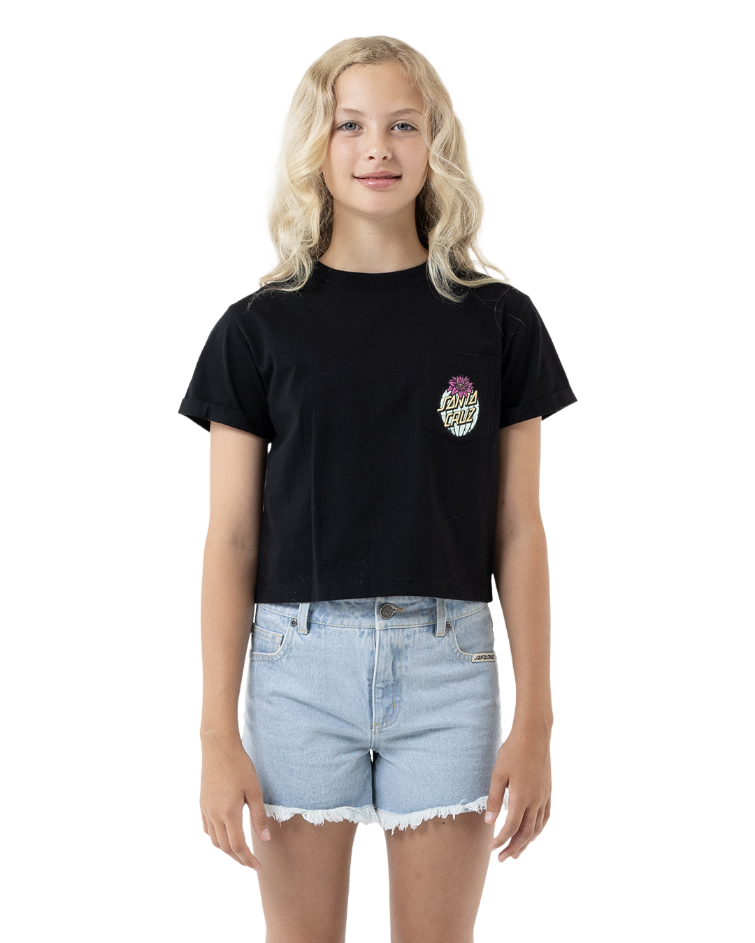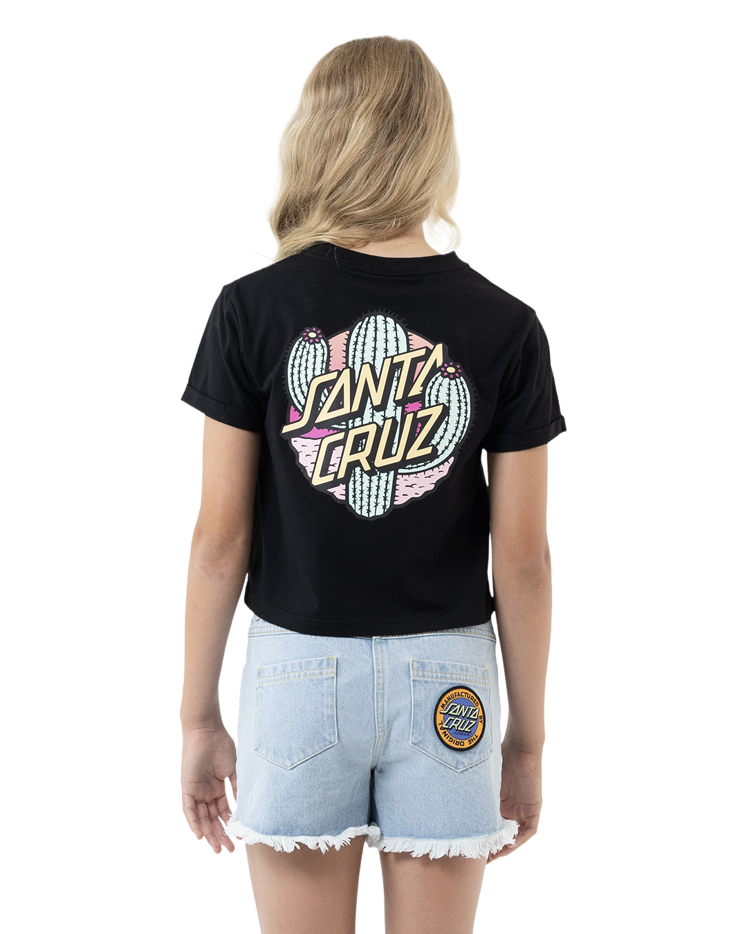 Girls Santa Cruz cropped t-shirt featuring print of the Cactus Dot artwork.